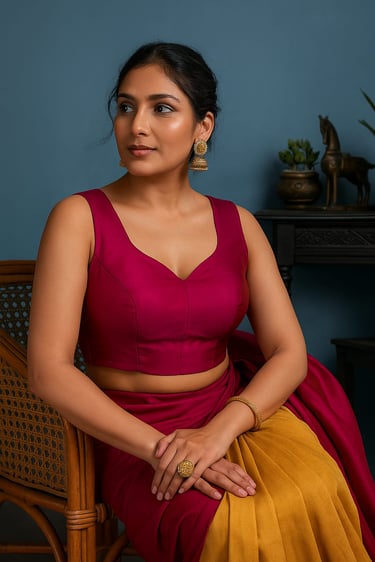 *All the dress, blouse and other things shown above are stitched by us. But to protect end user's privacy we used AI to regenerate the images.